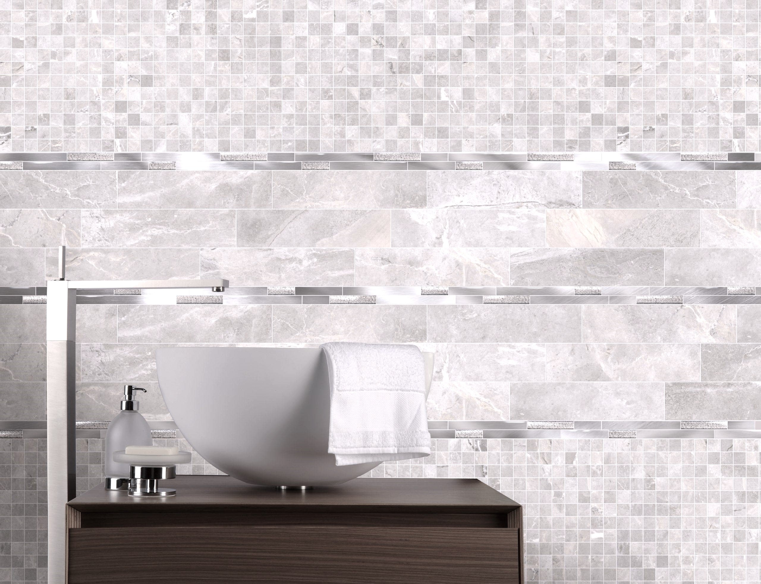Size: 3″x 12″ Field Tile, 2″x12″ Metal Trim, 3″x 12″ Chair Rail