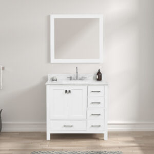 Vanity: 36″ W x 21-1/2″ D x 33″ H